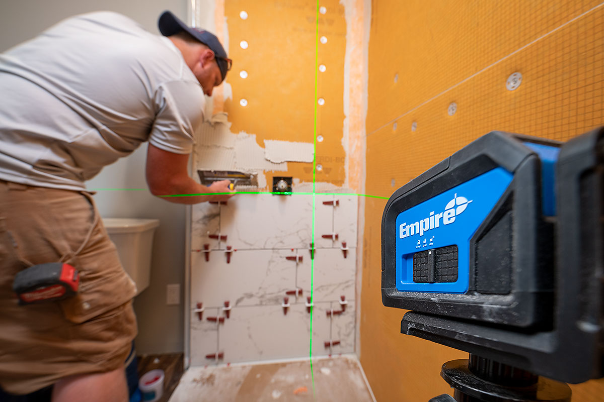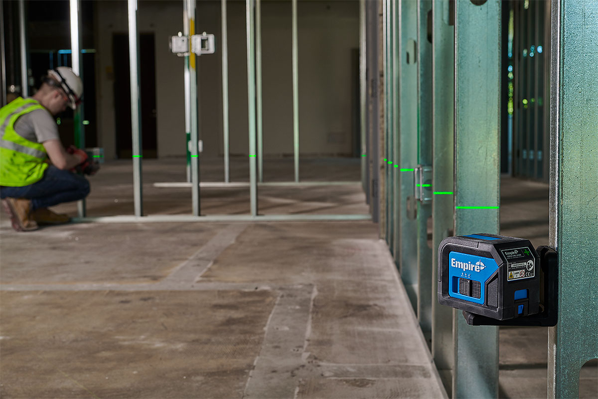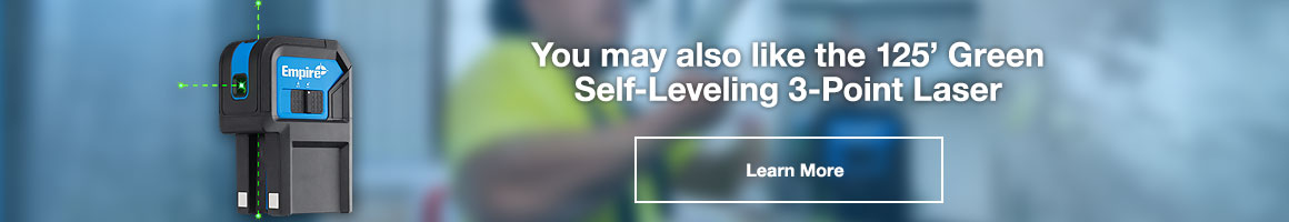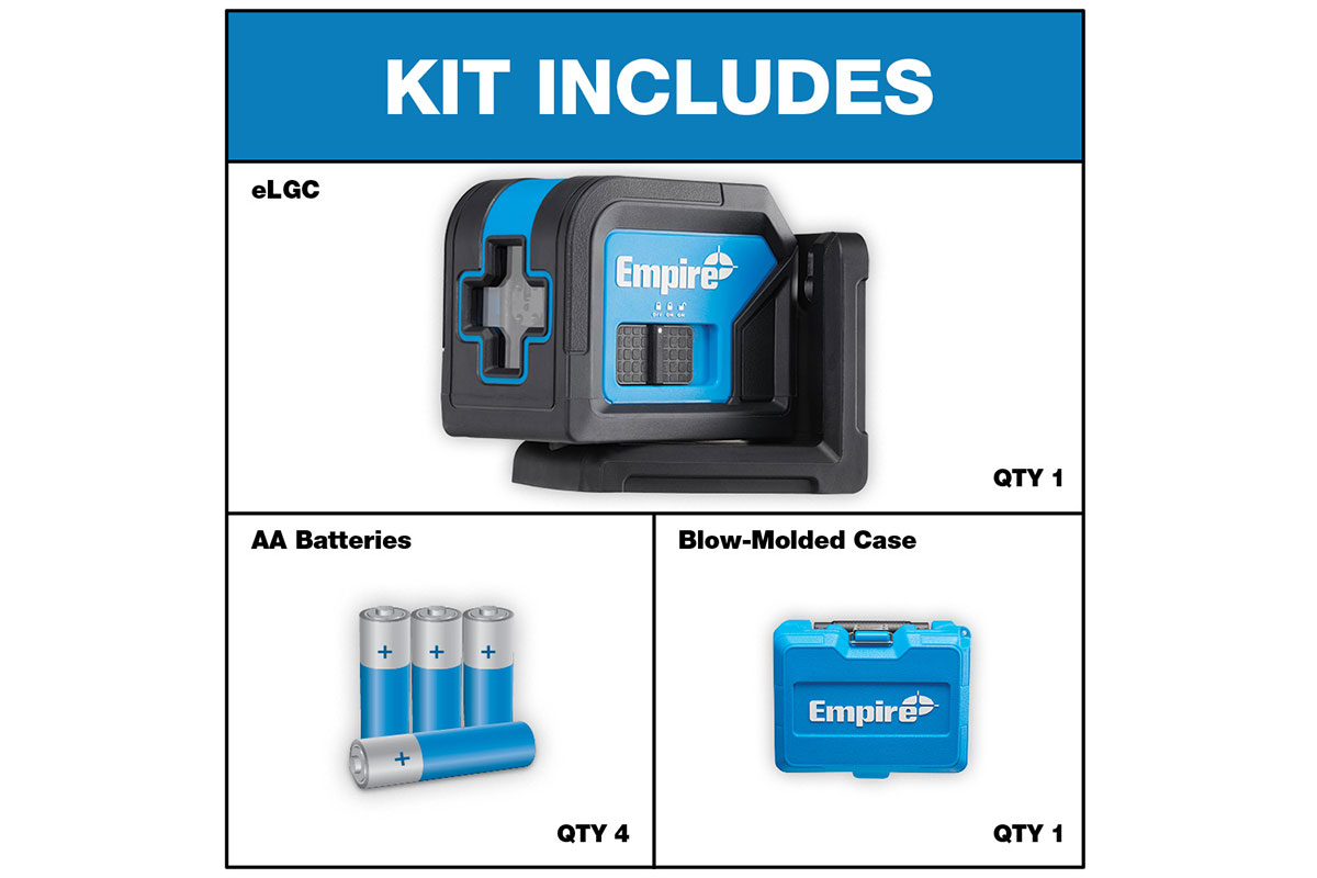 The Empire Green Self-Leveling Cross Line Laser provides a bright, durable, and compact, alkaline powered laser level solution that can assist in a variety of layout applications. With a working range of up to 75’, the bright green laser provides pronounced visibility when working even in well-lit conditions. The green line laser is powered by (4) AA Alkaline batteries for up to 15+ hours of continuous runtime, allowing for less downtime versus competitive alkaline laser solutions. This green line laser level also features a locking pendulum and rugged over-molded housing that withstands impact if dropped and maintains proper calibration. The green laser level has a fixed versatile 360° L-bracket with oversized rare earth magnets and rubber standoffs to fix the laser to a variety of materials without damaging finished surfaces. The Green Self-Leveling Cross Line Laser (eLGC) comes with a 1 Year Limited Lifetime Warranty.